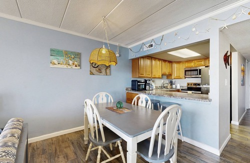 This fifth-floor condo sleeps up to eight guests between two bedrooms and a sleeper sofa in the living area. Sleep soundly in the tranquil primary bedroom, which features a queen-size bed, balcony access, and breathtaking ocean views. The en suite bathroom offers a tub/shower combination. The second bedroom is furnished with two full-size beds and a TV. The guest bathroom offers a tub/shower combination.