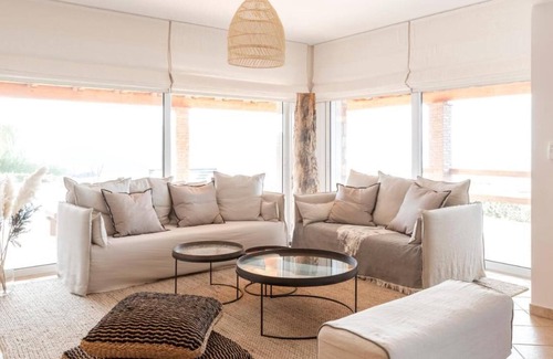 The air-conditioned villa consists of 3 bedrooms, a living room, a fully equipped kitchen with a fridge and a coffee machine, and 4 bathrooms with a shower and free toiletries. Towels and bed linen are featured in the villa.