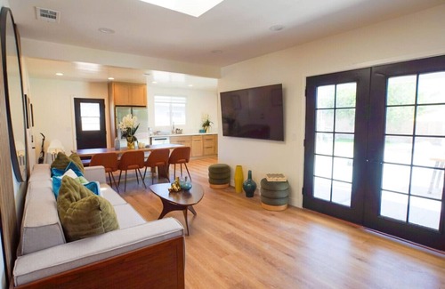 This is a recently renovated single-family residence. The home has 3 bedrooms, 1 office, 2 full bathrooms, a full kitchen, a living room, and a backyard with a BBQ, pool, firepit, and dining with complimentary amenities for your convenience. Our property is equipped with a smart TV in each room for your viewing pleasure.