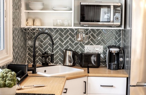 Both of the bedrooms are located on the first floor and offers large double beds and a family bathroom with a bathtub.