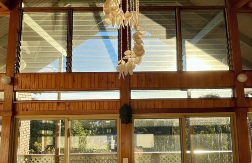 Original beach-house has solid timber Witzig architecture, north facing, NBN, eco-friendly passive solar, large covered deck, spacious & comfy living & dining areas spanning 3 levels.