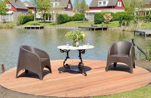 In this luxurious, particularly spacious holiday villa with sauna by the water you experience peace and spaciousness in ultimate form. The location of this house offers a lot of privacy and the garden overlooks the large pond in the park. The ground floor is very spacious with an open area where the living room, the dining area and the kitchen have been realized. A home where you can really enjoy spending time together with your partner, family or friends. You will find in all the houses below a sauna with a separate shower. In the living room there is a wood burning stove, which provides a cozy atmosphere in the fresher periods. Upstairs you will find three spacious bedrooms and a bathroom with shower, sink and a second toilet.