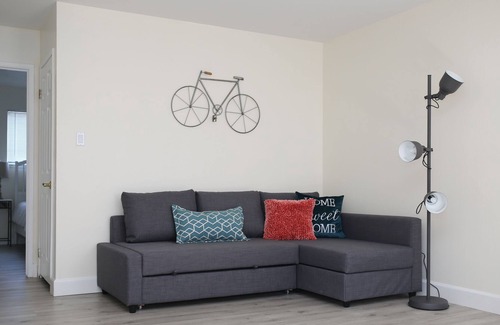 The remodeling apartment has a private bathroom, full kitchen, and two bedrooms. There are queen, two twin beds, and a sofa in the living room. The apartment is about 20 min to drive to San Jose and San Francisco airports.
