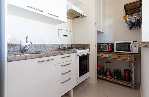 - Cozinha com todo o necessário para preparar e servir refeições no conforto do local: fogão, forno, micro-ondas, Air Fryer, chaleira elétrica, cafeteira, liquidificador e sanduicheira;