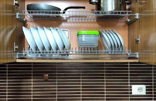 The apartment is large and has flexible space, composed of two bedrooms, one bathroom, a living room with a sofa bed, a kitchen, and a large balcony. All windows have thick blinds & it doesn’t get hot during the day. It is accessible by stairs on the 1 floor. This apartment can accommodate up to 5+2 ( kitchen because nearby there are a numerous supermarkets,Bar-cafe, Restaurants, pharmacies etc.