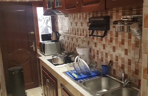 Apartment (creams) is one of the best equipped in the city of Douala, has 2 bedrooms, 2 showers equipped with air vacuum cleaner, a hair dryer, 1 kitchen equipped with author's extractor, a smoke detector. , hot water, a large living room, equipped with a magnetic card to reduce your electrical consumption. our apartments are equipped with internal telephone line, high speed wifi internet connection in all rooms, a videophone, air conditioners in all rooms, a TV screen in all rooms, hot water, irons in all bedrooms, a fully equipped kitchen, a laundry room for clothes in the building, a small supermarket in the building for your first needs, 2 parking lots equipped with surveillance cameras, day and night security guards, '' a range of rental cars available with optional driver.
