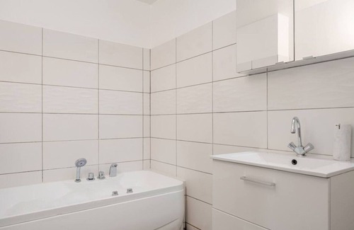 While you're here, you can enjoy all the comforts of home and more, including a jetted bathtub and WiFi, as well as a bidet and heating. Other amenities include towels, soap, toilet paper, and a hair dryer.