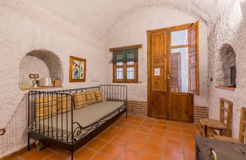 Boasting a beautiful view of the mountain, the holiday apartment Cueva Karmen is located in Guadix. The 60 m² property consists of a living room with a sofa bed for 2 people, a well-equipped kitchen, 1 bedroom and 1 bathroom and can therefore accommodate 4 people. Additional amenities include Wi-Fi, a TV as well as a washing machine. A baby cot is also available. This accommodation does not offer: air conditioning. Enjoy the convenience of a private barbecue for cooking delicious meals during your stay.