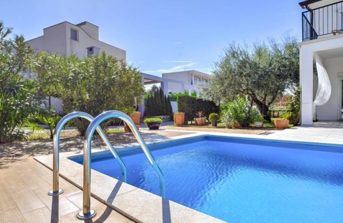 Apartment house "File". In the district of Zambratija, 3 km from the centre of Umag, 300 m from the sea, 300 m from the beach, in a cul-de-sac. For shared use: property 1'000 m2 (fenced) with lawn 100 m2, plants, swimming pool (7 x 4 m, depth 140 cm, seasonal availability: 01.May. - 15.Sep.). Outdoor shower, terrace (50 m2), garden furniture, barbecue. In the house: WiFi. Parking at the house. Shop 500 m, restaurant 100 m, bus stop 5.1 km, pebble beach 600 m, shingle beach, rocky beach 300 m, public bathing area 600 m. Sports centre 600 m, children's playground 50 m. Please note: the owner lives on the same property. Additional accommodations can be booked. WIFI limited speed. Sandy beach, plain sloping 600 m. Starting point of the mini train to Umag 600 m.