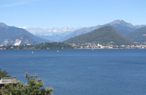 (Text automatically translated) Bedrooms apartment with private entrance, swimming pool, large terrace available, an entrance hall with wardrobe, bathroom with shower, double bedroom, living room with two twin / single sofas and fully equipped kitchen corner. Incredible views of the western shore of Lake Maggiore and the mountains, with a glimpse of Mount Rosa. The swimming pool is shared with the owners who live on the upper floors. Dedicated parking.
