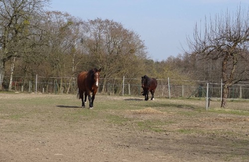 The 2004 newly built apartment has a total area of 75 sqm. The apartment has 2 bedrooms (1x with double bed (waterbed), 1 x 2 single beds), a fully equipped kitchen with oven, dishwasher, etc., a living room (open to the kitchen), a bathroom with shower and toilet and a large hallway , A balcony with garden furniture and a parasol with a size of about 8 square meters also belongs to the apartment. A barbecue area and a fireplace for cozy evenings are available for your stay. If the weather and our possibilities permit, we are happy to invite you to a carriage ride (if you stay with us for at least a week).