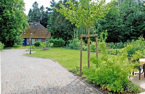 The apartment is about 60 square meters, has space for a maximum of 4 adults and was modern and high quality with Internet access. The living room has a comfortable couch with table and armchairs and a flat screen TV. Here is also a large dining table with chairs. The modern kitchen is fully equipped with a stove, oven, dishwasher, kettle, coffee maker, toaster and fridge. A wooden staircase leads to the first Stock to the two bedrooms and the bathroom. In the first bedroom has a comfortable queen-size bed with bedside tables and reading lamps. The second sheep room has a bunk bed. On arrival fresh towels are provided and the beds are of course already covered with linen. The bathroom is equipped with shower, toilet and wash basin and has daylight. To this apartment belongs also a nice terrace with garden furniture and views. The private garden was the garden architect Gabriella Pape of the Royal Garden Academy in Berlin - designed Dahlem. If you are interested in, you can view the garden like and taste some of the biologically generated income such as herbs, tomatoes etc. Twelve fruit trees also offer something to snack on.