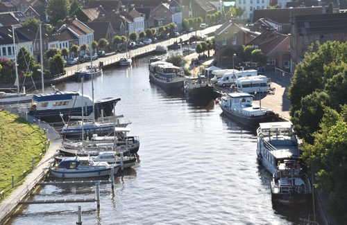 Exclusive location, beautiful view in the 1st. Line!In fact, you can spend your holidays in a modern captain's house right on the water in the middle of the marina park and harbor of Weener / Ems. Of course, the neighborhood 28 in the Kaptitänshus is safe (even submergible) built on the water and still you reach quite comfortably with your car on a solid road the property and house. A good comparison would be that a solid solid house as a plot like a boat on the quay. The dreamlike apartment is barrier-free on the ground floor of the captain's house. You can reach all rooms barrier-free via the ship-strong corridor. Entering the light-filled living area, you will first see the fantastic 24 m² water terrace and jetty!Thanks to the floor-to-ceiling panoramic windows on 2 sides, the living area is particularly bright and inviting. The large, upstream floating wooden terrace is equipped with new high-quality garden furniture and invite you to relaxed dining or sunbathing and reading in the fresh air. You immediately feel the protected location (south-west orientation) and still the freshness of the very close North Sea. Holidays in a beautiful water location. All amenities such as free wireless Internet access, cable connection with variety of programs, electric exterior blinds, underfloor heating in the bathroom, new kitchen fully equipped for your physical well-being, new box spring beds for restful sleep, carport for your car and wheels, and much more!