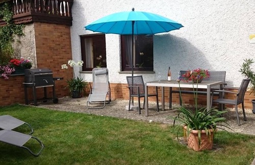 Cozy 50 square meter apartment with nature-loving hunter family. Children and dogs welcome. 2 ZKDu / Wc, large sunny terrace with barbecue, separate entrance, lawn, completely fenced. Quiet location near the forest. 2 km to the castle Eltz, 4 km to the Moselle. The dream path "Eltzer Burgpanorama" is only 300 m, "Pyrmonter Felsensteig" 6 km away. Explore the Moselle by bike or look forward to beautiful views along the Maifeld cycle path. Enjoy a gondola ride over the Rhine in Koblenz (30 km) or a day of swimming at Laacher See (25 km).