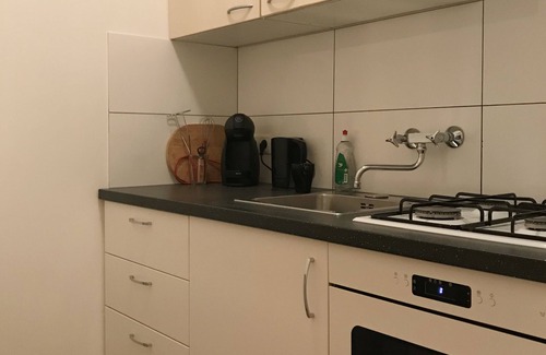 This Apartment is on the first floor. It can host 5 guests, by a double bed (1.30 x 1.90 m) and a double sleeping sofa (1.30 m x 1.90 m) and a single futon (1.95 m x 0.65 m). On the hallway are a private kitchen, a separate bathroom and separate toilet. The studio has windows on two sides of the room, but do not offer a view and can't be opened wide. Because of the central location near bars etc music and noise can be heard until late
