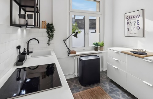 The apartment is situated close to the city yet surrounded by countryside, offering a panoramic view and direct proximity to the Mount of Olives. It lies just 1 km from the Luisenviertel, with all essential shops and public transport links within walking distance. The nearby venues and destinations include Taormina Restaurant at 2.5 km, Wuppertal at 3 km, Düsseldorf Old Town at 25 km, the Essen Art Museum at 28 km, and Düsseldorf Airport at 41 km.