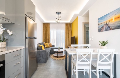 The holiday apartment Velvet 2, which is situated in RHODES, overlooks the nearby mountain. The 40 m² property consists of a living room, a well-equipped kitchen, 1 bedroom and 1 bathroom and can therefore accommodate 3 people. Additional amenities include high-speed Wi-Fi (suitable for video calls), a TV, air conditioning as well as a washing machine. This vacation rental offers a private outdoor space with a covered terrace and 2 balconies.