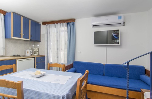 This split-level apartment features a private hot tub and offers views over the Aegean Sea. It includes 2 separate bedrooms, a well-equipped kitchenette, seating area and a TV. Please note that the hot tub is 1.5 x 2 metres.