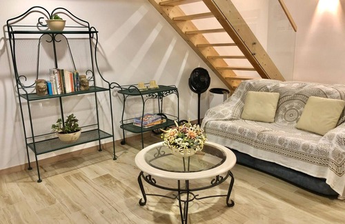 On the mezzanine, you will find a bedroom with a double bed, chest of drawers, wardrobe, and a work area. The living room has a sofa bed suitable for 1 adult or 2 small children. The private, fully equipped kitchen is integrated in an open space with the living room and includes a dishwasher, induction hob, extractor fan, electric oven, microwave, fridge-freezer, washing machine, water heater, hand blender, electric kettle, toaster, coffee machine, electric grill, and kitchen utensils. You have access to Wi-Fi, a fan, and a flat-screen TV with streaming services. The spacious bathroom features a Portuguese-style shower accessible for wheelchairs, toiletries, hairdryer, towel heater, and bidet shower.