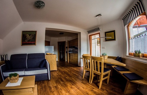 The apartment has 2 bedrooms and can accommodate 6 guests. One bedroom has a large double bed, the second bedroom has one bunk bed and the living room one sofa bed. The kitchen is fully equipped and has a dinning area. Guests can enjoy a private balcony and a bathroom with toilet and shower.