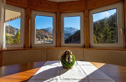 Elegant two-bedroom apartment with two bathrooms and a panoramic terrace, suitable for hosting up to 3 adults + 4 children under 14 years age.This wide apartment comes with an elegant and comfortable furniture, ideal for relaxing in the Dolomites.The flat is made of two bedrooms, of which one is a double room with a single sofa bed and one is a twin room, two bathrooms with shower, a separate kitchen and a wide living room with double sofa bed.The gem of this apartment is surely the wide southwards looking panoramic terrace, which boasts an awesome view on the Sella mountain. It is accessible from the double room and from the kitchen.The separate kitchen I fully equipped with dishwasher, oven, cooking plate, coffee machine, fridge, kitchen utensils, cutlery, dishes and much more.There is a washing machine inside the apartment.Wi-Fi, linen and towels are available for free use.Important information: According to recent provincial law this apartment can accommodate a maximum of:- Adults (from 14 years): 3- The remaining beds can only be occupied by children up to 13.99 years of age at the time of departurePlease note that this law is subject to strict controls by the competent authority and violation of it results in substantial fines. For this reason, no exceptions will be possible under any circumstances.Apartment Belvedere offers a holiday rental with spectacular panoramic view, few steps from the town center and the lifts of Selva Val Gardena away. Space and comfort praise this elegant apartment in the Dolomites. In Winter you will find the first skilifts / Ski slopes (Nives children slopes, connecting to the Sella Ronda) or the ski bus stop only 200-300 m away. For returning a ski path leads you straight to the house back. Ideal to explore the famous Dolomiti Superski! In Summer the cycling & hiking path runs by just beside the house. It is particularly ideal for families with children, as 100 m away there is a children playground with small soccer and basketball field, as well as the ice rink. The house is ideal for hiker of all levels, as the hiking paths do start just behind the house. Just few steps from the house you will find the grocery store and the first restaurants, as well as the Nives square. The property comes with 1 outdoor parking place, ski deposit, washing machine, Wi-Fi, linen and towels for free use.Pets not allowed. The apartment Belvedere is the elegant, spacious, central and panoramic solution you were looking for for your holidays in Selva Val Gardena!Check-in: 15:00 - 19:00 at MUSE.holiday office in Via Arnaria 9A, OrtiseiSome houses have remote check-in at the house with code access, we ask you to contact us about this at least 48 hours in advance to check if the house you have booked is among them.Check-Out: In person from 8:00-9:00 at MUSE.holiday office in Via Arnaria 9A, Ortisei (except houses with code access)Not all houses allow pets. To avoid misunderstandings, we ask you to inform us by separate mail if you intend to bring them with you. In houses where pets are allowed, there is a surcharge of € 15.00 / animal / night. Baby cot, high chair and cot rail are available for a fee and must be booked in advance.Check-In after 7 p.m. only possible with prior notification by 6 p.m. day of arrival and upon submission of required documents and payment of tourist tax + extras by credit card for check-inHeating is on from October to April (during this period the heating is not on if the outside temperature exceeds 15°c or if the inside temperature reaches or exceeds 21°C)Charging of electric vehicles or other storage devices not permitted, unless otherwise stated in the advertisement. If allowed, it is available only after reconfirmation by MUSE.holiday and at a variable extra cost.In case of wasted electricity, gas or other utilities there is an additional cost (e.g.: lights on all day in the absence of guests, heating running with open windows).It is duty of the guests to open the windows at least twice a day, once in the morning and once in the evening, for at least 5 minutes each, to let humidity exit the apartment and avoid mold formation. If this rule is not respected and mold is found upon departure of the guests, costs to restore the apartment integrity will apply.Due to the geographical location, Wi-Fi may be interrupted or slowed down, so this service is not always guaranteed.The house is not equipped with foodstuffs such as cooking spices or various consumables such as shampoo, soap, etc... Any consumables present are intended only as a welcome kit and will not be refilled during your stay.The payments required to enter the flat are the tourist tax + pre-authorization through SWIKLY of the security deposit by credit card of 500€.If not previously agreed, the physical keys, the benefit card and other accessories provided at check-in are to be returned to the MUSE.holiday office in Via Arnaria 9A in Ortisei, otherwise 50€ will be charged for key collection.The final cleaning amount covers a standard cleaning only. It does not include the washing of the dishes and the removal of trash from the apartments to the indicated spots. Therefore, excessively dirty apartments, dishes not washed, and trash not removed will be amended with a variable extra fee, basing on the entity of the working hours surplus.Important: We are partnered with SWIKLY – the leading vacation rental deposit provider. Before the check-in starts you will have to obligatory proceed with the online payment of the deposit, nothing will be deducted from your credit card, pre-authorized, or blocked. This will not even affect the limit of your credit card!