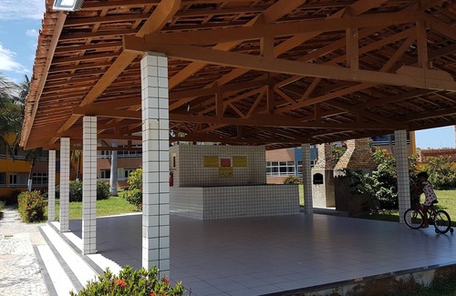 With 77sqm, living room with 2 hammocks on the balcony, 2 large airy bedrooms, two bedrooms with split air conditioning, American kitchen, refrigerator, stove and kitchen utensils (pans, cutlery and dishes, coffee maker, sandwich maker, blender, etc), 2 bathrooms; 1 parking space + openings for visitors, 1st floor with lateral view to the sea and panoramic view to the pool and all leisure area, 24h doorman, Internal Circuit TV and Electric Fence ensuring the security of the Condominium. Excellent option for groups of friends or families, comfortably accommodates 8 people being 4 in the room with 2 box beds and 2 auxiliary beds; and in the bedroom suite a double bed with an inflatable mattress and in the living room a sofa bed.
