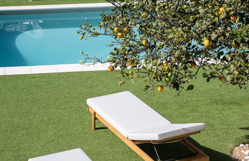 - Guests have full access to a shared outdoor pool with comfortable sun loungers, perfect to enjoy the sun.