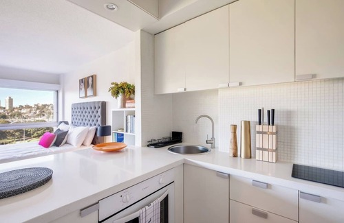 Overlooking lush parkland and Sydney's sprawling skyline, this Rushcutters Bay studio is situated in the ‘Aquarius’ building, designed by iconic architect Harry Seidler. Honouring its designer history, the apartment has been professionally styled with contemporary pieces and offers floor-to-ceiling glass windows boasting uninterrupted views day and night. This peaceful address perimeters the bustling city, surrounded by trendy eateries and just 10-minutes to the buzz of Potts Point.
