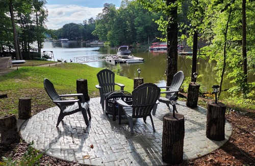 Beautiful three bedroom, three bath on High Rock Lake with private dock and plenty of space for that perfect lake vacation. Three levels for you and your guests to spread out. Enjoy lake life, just steps away from the back door, with the two kayaks and paddleboat provided, or just relax and fish off the dock. Bad weather? No problem! The garage has been converted to a gathering space with tv, pool table and video game to entertain. So many memories to be made at High Rock Lake!