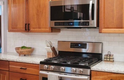 Experience luxury at our spacious 6-bedroom Bentonville retreat, perfect for groups. With an indoor heated pool, hot tub, pool table, golf simulator and a fully-stocked kitchen, this home blends comfort and elegance. Minutes from Crystal Bridges and Walmart Museum, it offers plush bedrooms, a modern kitchen, and two dining areas. Enjoy the smart lock system, ample parking, and pet-friendly policies. Explore nearby attractions like the Slaughter Pen Trail, or relax by the fireplace for unforgettable holidays.