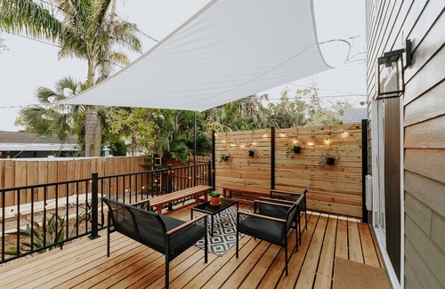 Beautifully modern house nestled in a tranquil Florida neighborhood just 5 minutes from Sarasota's quaint downtown. Close to the best local white sand beaches (6mi to Siesta, 5mi to Lido). Luxuriously designed and stylishly decorated, with a beautifully and fully equipped kitchen, and a dreamy, tropical backyard with a brand new hot tub, sun loungers, and outdoor dining. The perfect home away from home with thoughtful details to make your stay comfortable and relaxing.