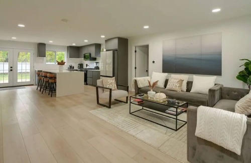 • A spacious living area with a 75 flat-screen TV and streaming services (Apple TV, Netflix, Hulu, Disney Plus, Youtube TV)