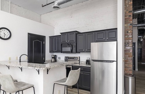 Art District Loft - 4BD/2BA Downtown SGF, Brick City is located in Downtown Springfield. Art District Loft - 4BD/2BA Downtown SGF, Brick City provides accommodation, featuring Bedding/Linens, Fireplace/Heating, Guest Services, among other amenities. This Apartment features Bedding/Linens, Fireplace/Heating, Guest Services, to make your stay a comfortable one.