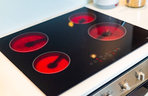 The Villa has a large kitchen area with necessary cooking stuff (spoons, forks, cups, pans, mugs, wine glasses, microwave, oven, refrigerator, kettle, toaster, coffee maker).