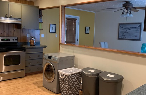 Enter through the front door, and immediately feel welcomed into our light, airy, serene home. Large windows create a bright living space and provide the feel of being connected to the outdoors. The living room includes ample, cozy seating and a pull-out queen sleeper sofa. We have a 54” TV with cable service and a designated work-space, with a desk. We offer FREE WIFI.