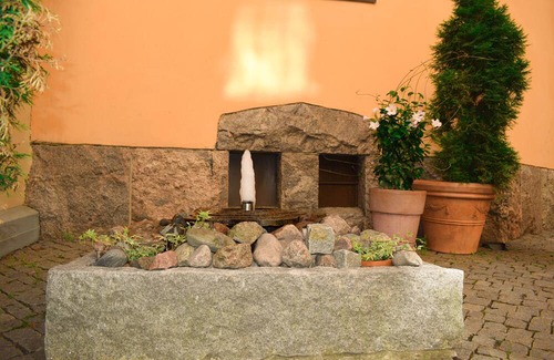 This apartment is in the old beautiful pink building "Ihantola" (from 1908), which is highly admired in Kallio and Helsinki. It has a lovely courtyard, which is wonderful especially at summer time: a fountain and tables to take your coffee outside and enjoy your day. At winter time the courtyard has a beautiful Christmas tree with lights.