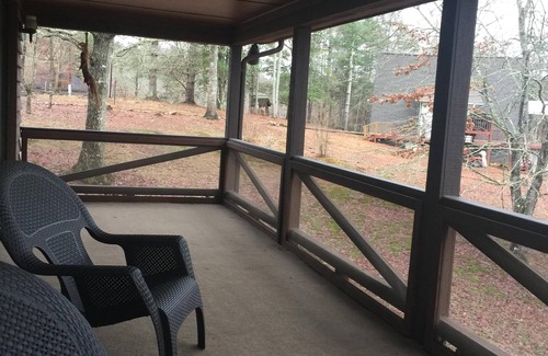 6. One level living with a full finished walk out lower level and large open kitchen. Living room overlooks Lake Wells with full covered porch and gas BBQ. The lower level has a full bedroom with queen sized bed, pool table, kitchenette, full bathroom, living room with a 65" flat screen TV with Netflix, and other smart TV channels. Walk right out to the flat one acre property and enjoy the fire pit, or go fishing or canoeing off your own private dock. This cabin is located within 7 miles from town & less then 5 minutes from the flea markets. The Casino is about 10 miles from door to door. Leave your worries behind and sit on the deck swing or just relax. Free use of rowboat, canoe, life jackets, tubes, and all fishing rods and gear. Great fire pit to sit around and enjoy the lake. Big dock also to fish or swim off of.