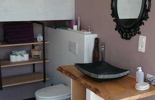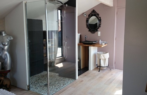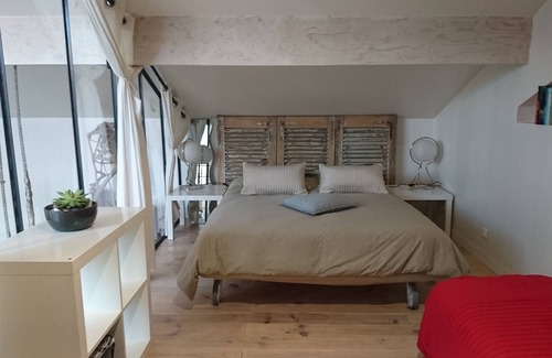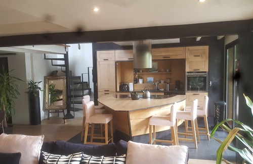 Loft L'Atelier: Solid oak kitchen open to living room, Solid oak parquet, 1 master suite, 1 mezzanine with 1 double bed and 2 pull-out beds for 2 adults and 2 children, terrace and patio