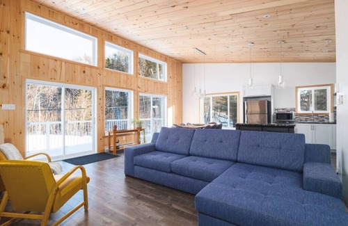 Our chalet is newly built and furnished. It is located in a magnificent setting overlooking the Mastigouche River and the mountains.