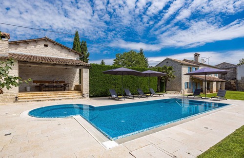 Villa Castela is a blend of traditional and modern details and is located in a clearing surrounded by oak and cypress forests. The villa is perfect for a holiday for those who appreciate the beauty of nature and long for peace and quiet. This beautiful 300 m2 villa is located on a 10000 m2 private plot and consists of two large living rooms, a charming kitchen, two beautiful bedrooms and three comfortable bathrooms. The property is equipped with wifi. It is an ideal place for a relaxing holiday with friends and family. This beautiful villa offers breathtaking views of the surrounding nature and countryside. The villa has been carefully decorated with high quality furniture and great attention to detail. A beautiful garden with a private swimming pool (45m2) will provide you with the perfect relaxing holiday. There is also a barbecue at your disposal. Relax your body and mind with the perfect combination of elegance and nature. Particularly attractive is the terrace, which stretches along one side of the house and offers a view of the surrounding hills. It is the ideal place for dining and relaxing with family and friends. The surrounding houses are far enough away to ensure privacy. Villa Castela is ideal for family gatherings or a getaway with your friends. Pets are allowed in this property at the owner's discretion or for a fee. Please note that this property does not accept youth groups or stag and hen parties. A youth group at this property consists of people under the age of 30. Do not book this property if you are a youth group or stag party as your booking will be refused after booking, which may also be on arrival at the property or during your stay, and you will not receive a refund.