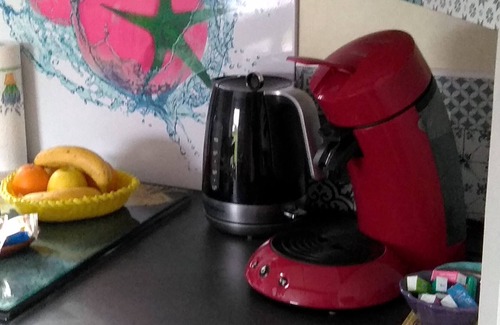 Guest accommodations at Baie de st valéry/somme le crotoy, cosy mobi-loft + hamman, sauna option offer coffee/tea makers and hair dryers. Rooms open to patios. Kitchens offer refrigerators, stovetops, microwaves, and cookware/dishes/utensils.