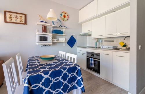 The accommodation is equipped with the following items: garden furniture, 14 m² terrace, iron, internet (Wi-Fi), hair dryer, gym / fitness centre, air conditioning throughout the house, communal swimming pool, open-air parking the same building, 2 fans, 2 TVs, tv satellite.