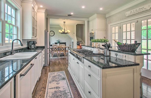 CHEF'S KITCHEN: Fridge, 48" gas cooktop, double oven, dishwasher, cooking basics, dishware & flatware, microwave, toaster, 2-in-1 single-serve & drip coffee maker, blender, tea kettle, spices, water filter, trash bags, paper towels