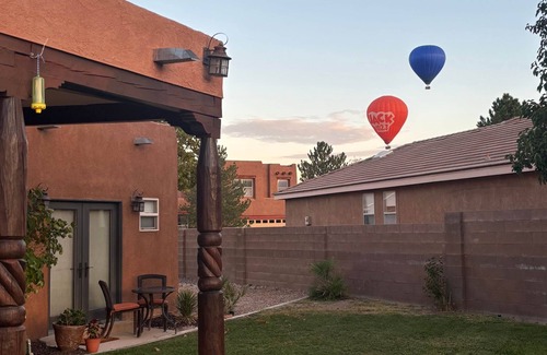 This hideaway is located near Balloon Fiesta Park and offers convenience and views of the Sandia Mountains. Separate entrance and parking right outside. Beautiful yard to sit outside and watch balloons if you want to avoid the traffic.