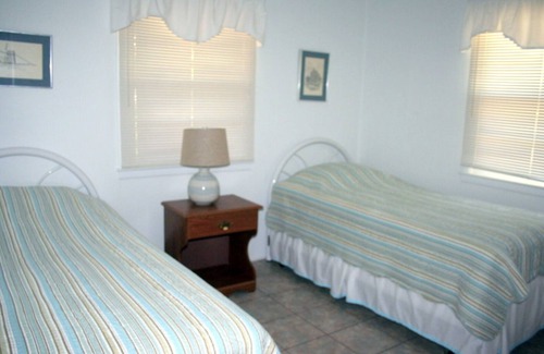 It's on a block with a beach tram to save your feet from the hot sand and drop you off right at the water on a lifeguarded beach. The bay on the west side of the island is a short 1 1/2 block walk away for watching amazing sunsets. The house is also located within walking distance of the lighthouse, restaurants, ice cream parlor, mini golf and souvenir shops.