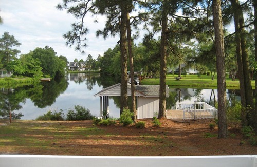 Beautiful Remodeled House on the water, 2800sf with 3BR/4BA, sleeps 12 in a gated community. Rec Room with Pool Table, 4 SeaterTable for cards and games, full bath, and futon with 2 huge windows overlooking the canal. Kitchen with granite counters, SS Appliances and eat at bar and dining room. Master Bedroom Downstairs with queen bed, New Master Bath with tile shower and garden tub, Laundry Room with w/d and another full bath, 2 sitting rooms, one has a fireplace and a sofa bed, the other has built in bookcases. 2 Bedrooms and full bath upstairs, One bedroom has 2 queen beds, another bedroom has 2 full beds. TV's in one sitting room and in all the bedrooms, ceiling fans in all bedrooms, family room, sun room and rec room. Huge deck with 2 tables and umbrellas, gas grill provided, screened porch and brick paver patio. Sheets and towels provided. Brick paver walkway to the Boat Dock with 6 Adirondack chairs. Bring your boat, jet skis, and your golf cart. As a guest you will enjoy Basketball Court, Tennis Court, Volleyball net, Walking Trails, Bike Trails, Playground, Beach Club and Cabana with large sandy beach. Groceries, shopping and restaurants nearby. Take a day trip to the beach, Carolina and Wrightsville beach less than an hour, Myrtle beach is about 90 minutes. White Lake Waterpark is 10 minutes down the road, White Lake has an arcade and rides in the summer and ice cream!