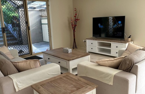 Beautifully presented and fully equipped with everything you need including fridge, microwave, toaster, laundry machine, central heating systems to all rooms, individual air conditioning (cooling) units in dining room, controlled ceiling fans in master bedroom plus family room, and two roomy living spaces with smart TV and wifi included. Master bedroom includes king bed with modern ensuite and separate bedrooms include 1x queen bed and 2 single beds- comfortably sleeps 6 and perfect for the whole family or friends. Elevated spacious grassy backyard also equipped with outdoor seating and leisure space with a veggie patch.