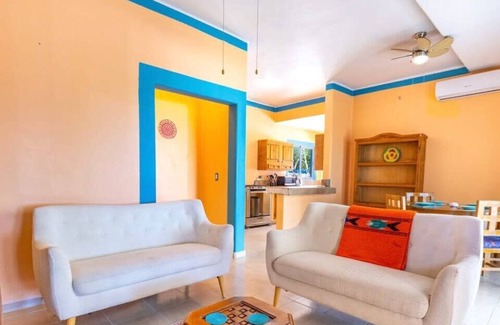 Enjoy coastal charm and traditional Mexican decor in this fabulous home, ideal for a couple or friend’s stay. You’ll have a comfortable living room with sofas and a flatscreen TV for relaxing downtime moments, a fully equipped and spacious kitchen with all the appliances and utensils you’d need to prepare meals, and a dining area to enjoy them with a view to the yard and a glimpse of the bay!