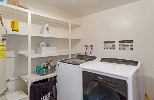 On the other side of the living room you will find the fully equipped chef’s kitchen with Viking Professional appliances, All-Clad cookware, and everything else you’ll need for your culinary enjoyment. This home is equipped with a standard, drip-style coffee maker and a French press. With the open layout, there is plenty of seating and counter space for everyone to be working in the kitchen, playing games in the dining room, or lounging nearby in the living room around the cozy gas fireplace. This home provides a children's booster seat as well as a highchair.