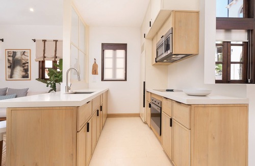 Welcome to Plaza Mercado 12, a clean and fresh Mediterranean-styled 2-bedroom condo in the heart of Las Catalinas, a car-free beach town that blends the charm of the Mediterranean with the natural beauty of Costa Rica.